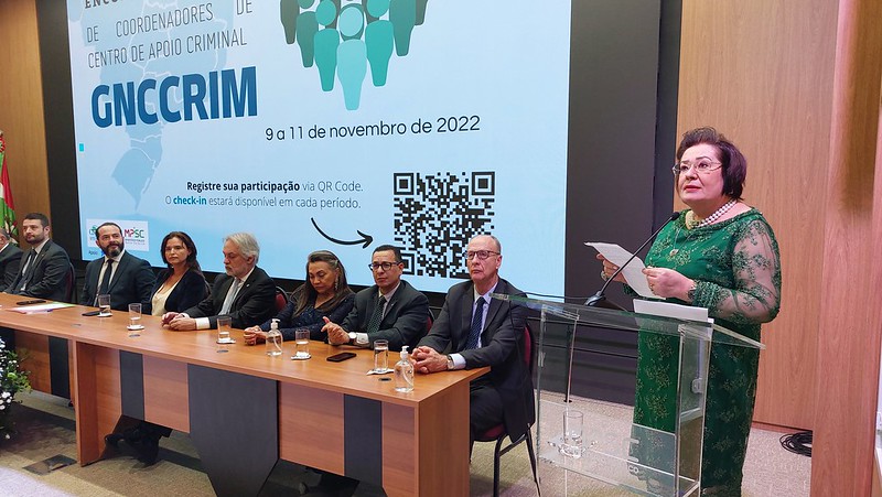 A atuação do Ministério Público brasileiro na área criminal está sendo debatida durante Encontro do Grupo Nacional de Coordenadores de Centro de Apoio Criminal (GNCCRIM), do Conselho Nacional dos Procuradores-Gerais do Ministério Público dos Estados e da União (CNPG). Realizado em Santa Catarina, o evento teve início ontem, dia 9, e segue até amanhã, dia 11. Estão sendo compartilhadas experiências e práticas exitosas. A abertura do encontro, sediado no MPSC, contou com a presença do ministro do Superior Tribunal de Justiça (STJ) Jorge Mussi; da presidente do CNPG, procuradora-geral de Justiça da Bahia Norma Cavalcanti; o PGJ do MP catarinense Fernando Comin; e a presidente do GNCCRIM, PGJ do Distrito Federal Fabiana Barreto.