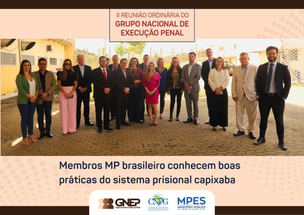 Membros MP brasileiro conhecem boas práticas do sistema prisional capixaba admin 22 de agosto de 2023 Em continuidade à II Reunião Ordinária do Grupo Nacional de Execução Penal (GNEP), realizada em Vitória, cerca de 20 promotores