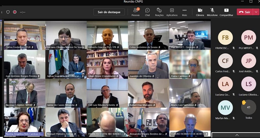 A reunião, realizada virtualmente, reiterou o repúdio aos atos criminosos de invasão aos prédios dos Poderes da República e ratificou o protagonismo e o compromisso do Ministério Público com a investigação dos fatos. Estavam presentes os conselheiros dos Conselhos Nacionais do Ministério Público (CNMP), Paulo Passos e Jaime de Cássio Miranda, e de Justiça (CNJ), João Paulo Schoucair; o subprocurador-geral da República, Carlos Frederico, representando o procurador-geral Augusto Aras; o presidente da Associação Nacional dos Membros do Ministério Público (Conamp), Manoel Murrieta; os procuradores-gerais de Justiça dos MPs estaduais e da União; e o secretário-executivo do CNPG, Pedro Maia.