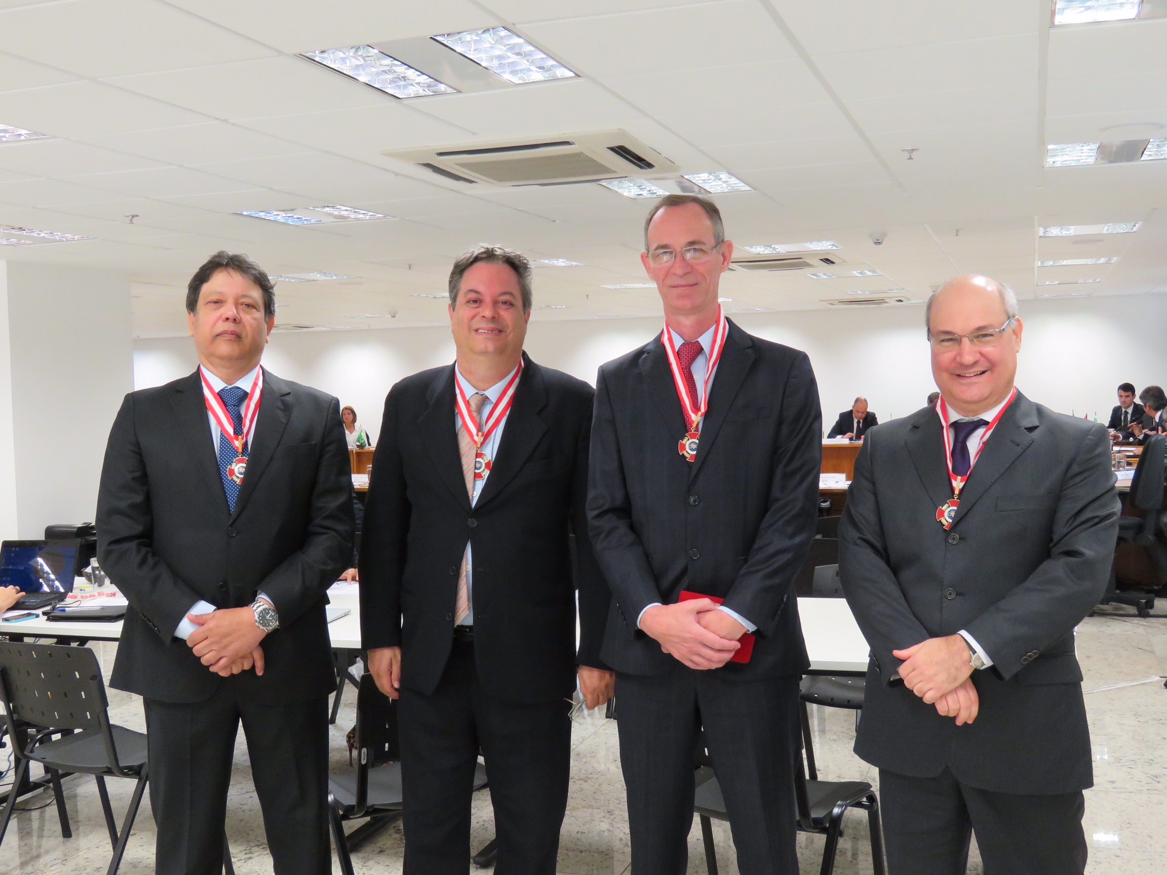 Durante a reunião ordinária do Conselho Nacional dos Procuradores-Gerais do Ministério Público dos Estados e da União (CNPG), realizada nesta quarta-feira (15/6), na sede do Ministério Público Militar, em Brasília (DF), o colegiado homenageou quatro ex-procuradores-gerais de Justiça que já integraram o Conselho. Por iniciativa do presidente, Lauro Machado Nogueira, receberam a Medalha de Honra do CNPG os membros Eder Pontes da Silva (MPES), Lio Marcos Marin (MPSC), Marcelo Weitzel Rabello de Souza (MPM), Márcio Fernando Elias Rosa (MPSP) e Márcio José Cordeiro Fahel (MPBA). O plenário salientou o brilhantismo e a dedicação dos homenageados pelo avanço do Ministério Público brasileiro.