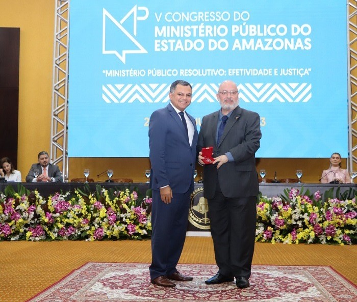 Durante a cerimônia de abertura o Presidente do CNPG, César Mattar Jr., foi um dos agraciados com a Medalha alusiva aos 131 anos do MPAM.