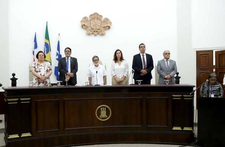 A presidente do Conselho Nacional dos Procuradores-Gerais do Ministério Público dos Estados e da União (CNPG) e procuradora-geral de Justiça da Bahia, Norma Cavalcanti, participou hoje, dia 13, do ‘Ato em defesa do Estado Democrático de Direito e de repúdio à invasão às sedes dos Três Poderes”, promovido pela Universidade Federal da Bahia (Ufba), Ordem dos Advogados do Brasil – secção Bahia (OAB/BA) e Faculdade de Direito da Ufba. O evento ocorreu no salão nobre da reitoria da Universidade e teve também na mesa de honra o desembargador Lidivaldo Britto, representando o Tribunal de Justiça; o reitor da Ufba, Paulo César Miguez; a presidente da OAB, Daniela Borges; o diretor da Faculdade de Direito, Júlio César de Sá; e do defensor público-geral Rafson Ximenes. O procurador-geral de Justiça Adjunto, Paulo Marcelo Santana, e a procuradora de Justiça Márcia Virgens estiveram presentes.