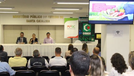 A coordenadora do Centro de Apoio Operacional do Consumidor, Promotora de Justiça Greicia Malheiros da Rosa Souza, explicou que o objetivo do seminário, organizado em parceria com a CIDASC, foi atualizar os agentes dos órgãos governamentais sobre o Decreto Estadual 1.331/2017, que trouxe novas regulamentações sobre os agrotóxicos em Santa Catarina e discutir propostas de atuação conjunta. A abertura do evento contou com a participação do Secretário Adjunto da Agricultura e da Pesca de Santa Catarina, Athos de Almeida Lopes Filho, e do Gestor do Departamento Estadual de Defesa Sanitária Vegetal da CIDASC, Ricardo Miotto Ternus.