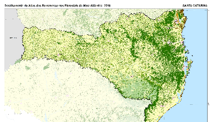 Durante o último dia do Seminário “Santa Catarina (ainda) é Mata Atlântica” a pesquisadora da fundação SOS Mata Atlântica, Marcia Hirota, entregou a representantes do Ministério Público de Santa Catarina (MPSC) e do Governo do Estado de Santa Catarina mapas que mostram o total de remanescentes florestais do bioma Mata Atlântica no estado de Santa Catarina. A ONG mapeia desde 1985 o total de mata atlântica presente em território brasileiro, porém, em suas últimas análises, a fundação estudava apenas territórios de 3 hectares ou mais. Nos novos mapas entregues hoje, a ONG analisou pela primeira vez no estado áreas a partir de 1 hectare.